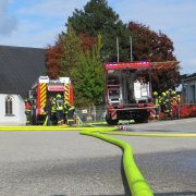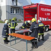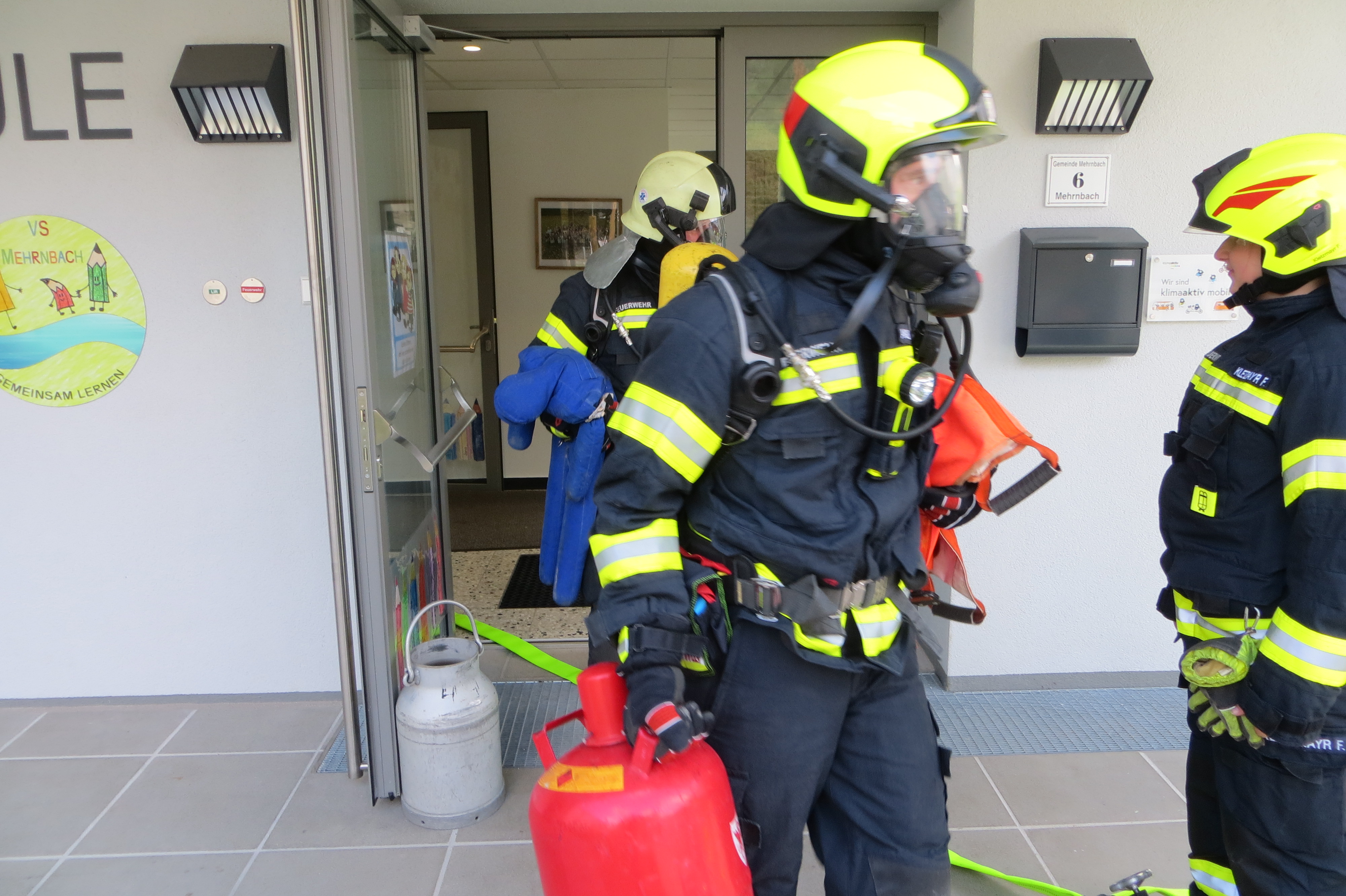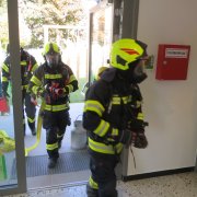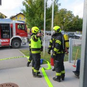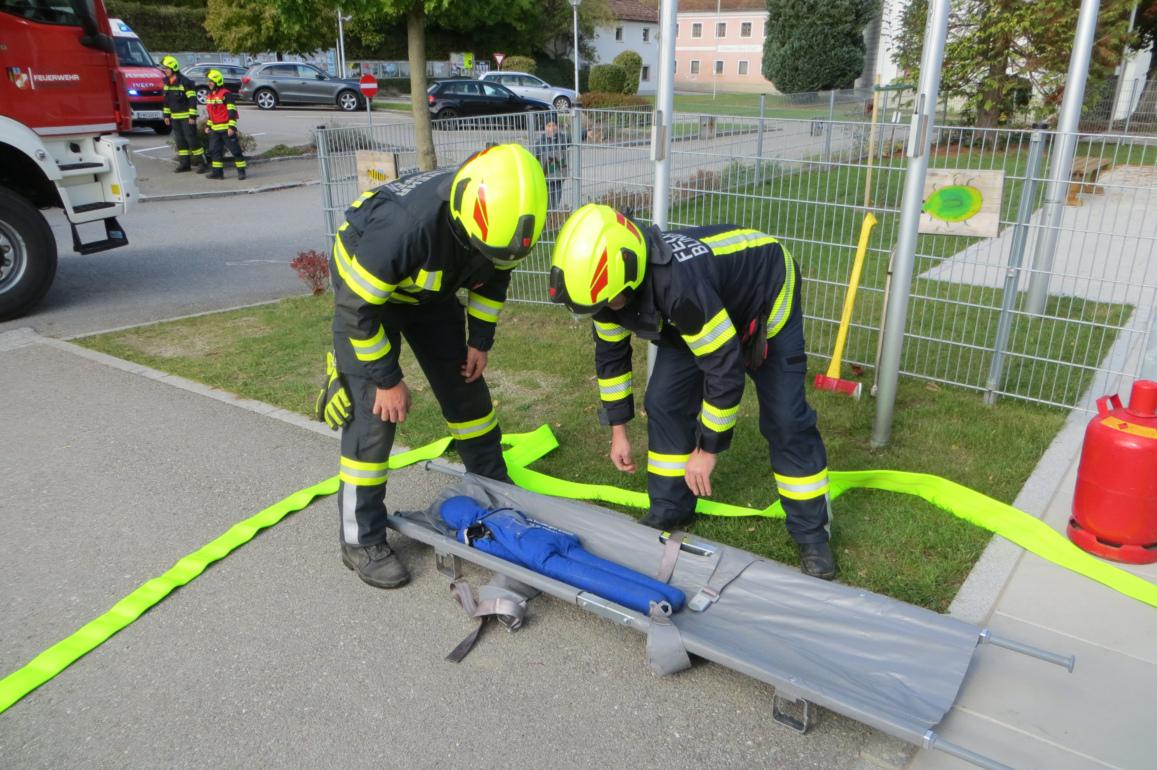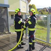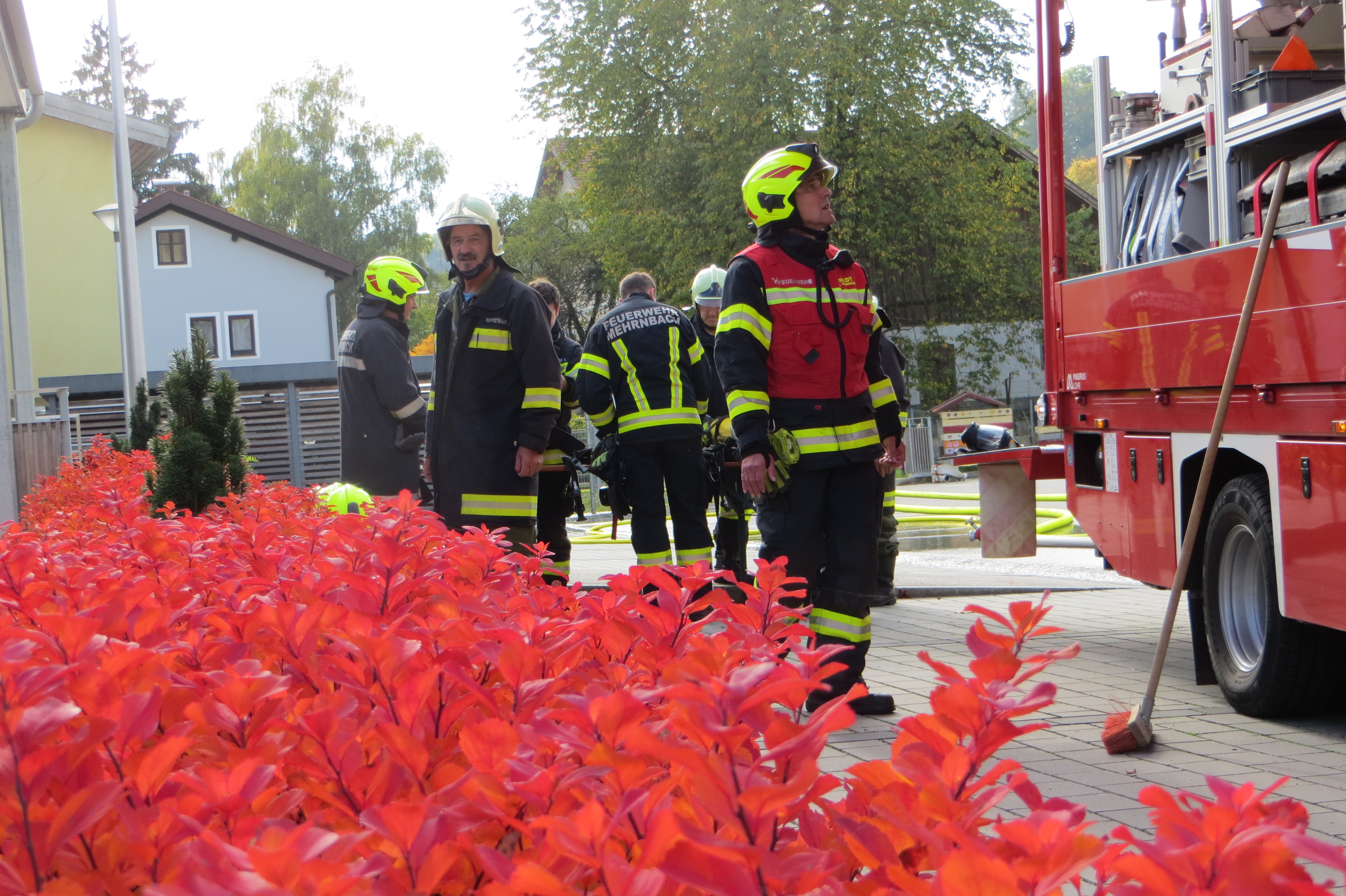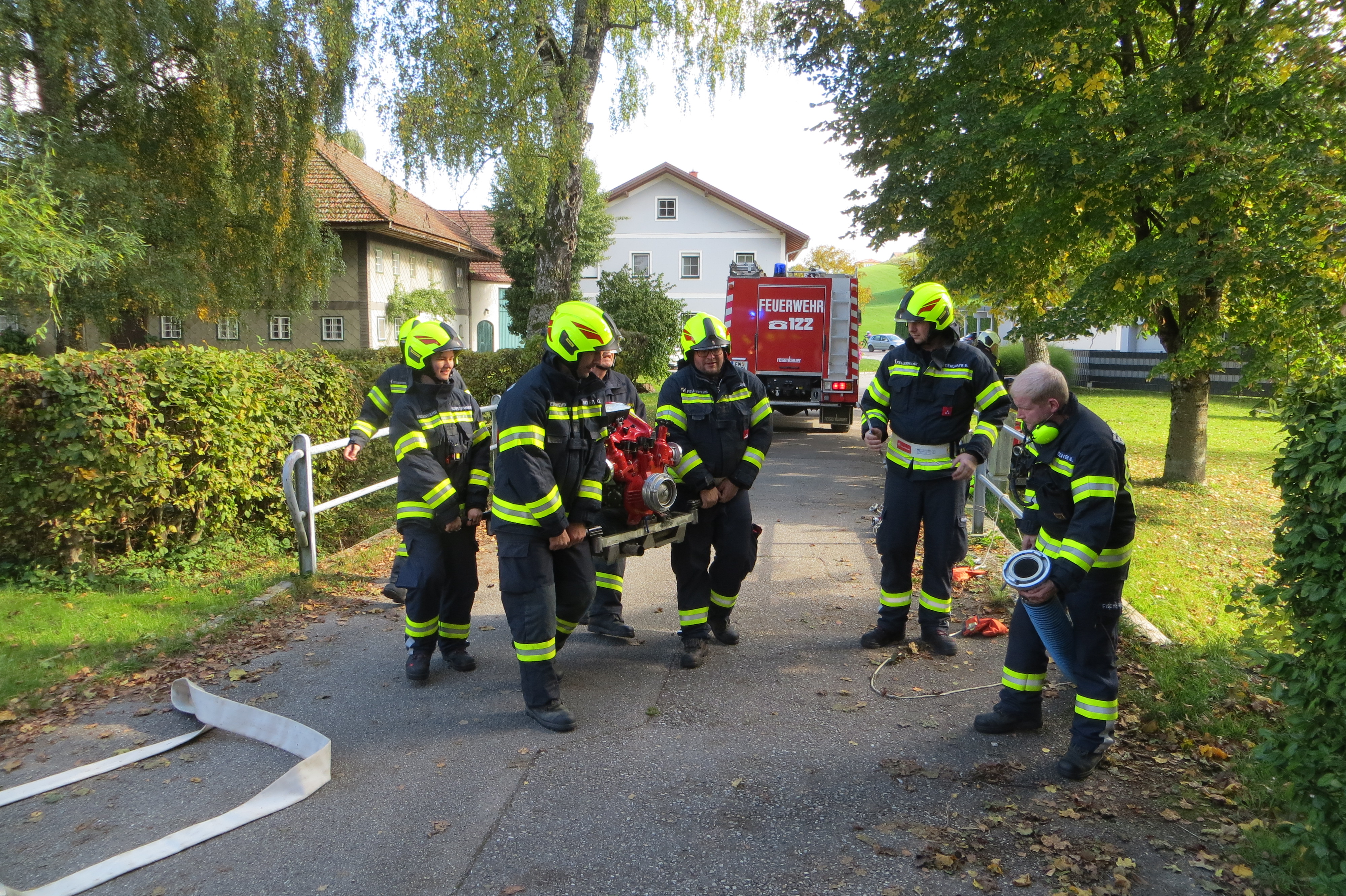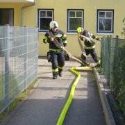 In der Annahme eines Brandes wurde die Zusammenarbeit der Mehrnbacher Feuerwehren geübt. Von der Wasserversorgung aus dem Kretschbach, über die Atemschutztrupps für den Innenangriff bis zur Rettung von Verletzten wurde alles im neuen Gebäude getestet. Auch die Feuerwehr Ried im Innkreis war mit der Drehleiter zu Gast.